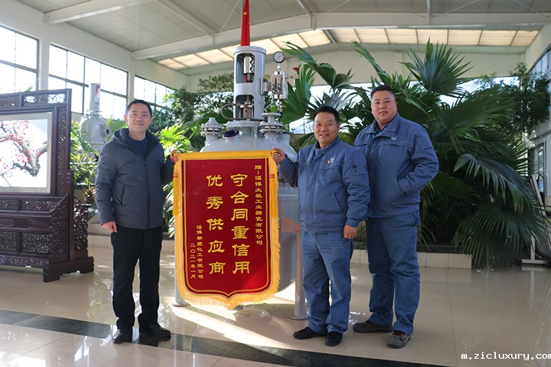2021年1月7日淄博新宿化工有限公司相关领导特意来到我太极九游会ag登陆公司,亲手赠予我公司“守合同重信用,优秀供应商”锦旗以表感谢。由于该公司生产线扩产需要,在工期非常紧,品质要求非常严格的情况下,我公司技术及相关生产人员,协同合作,加班加点,所需设备保质保量按时交货,从而保证了该公司生产线的如期安全合格投入使用。