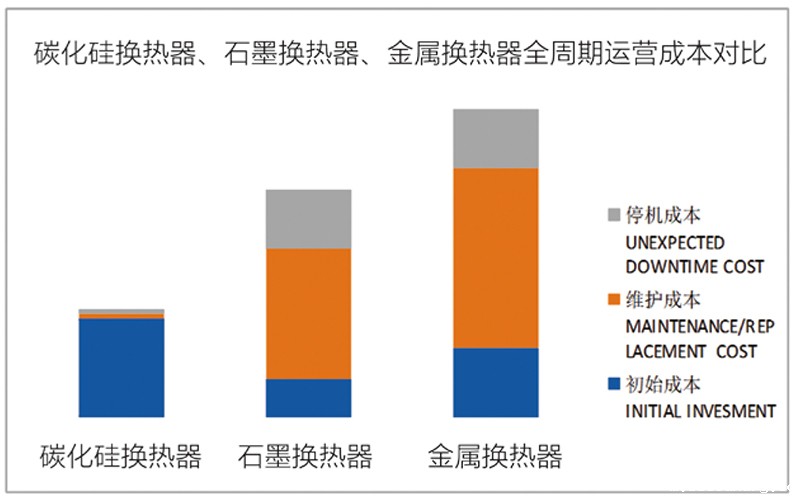 购买、保养维护、意外停机等综合成本优于石墨及其它金属换热器。