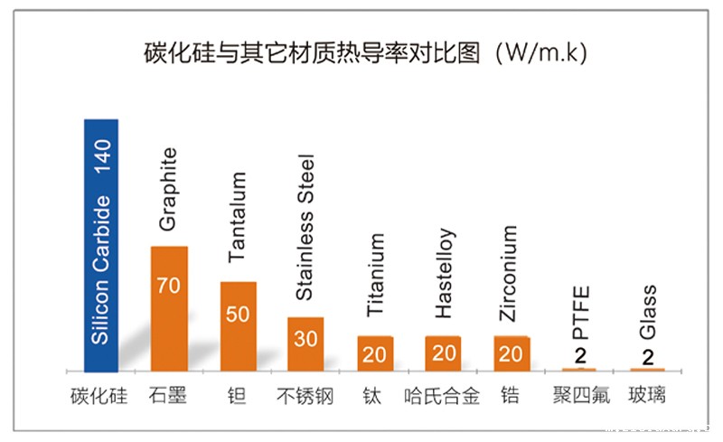 碳化硅换热器热导效率远远高于其它传统耐腐蚀材料的换热器;